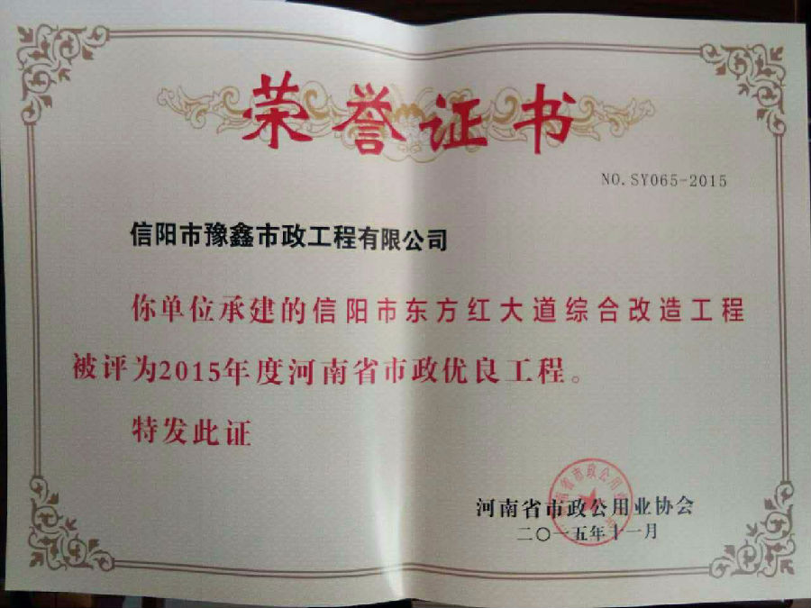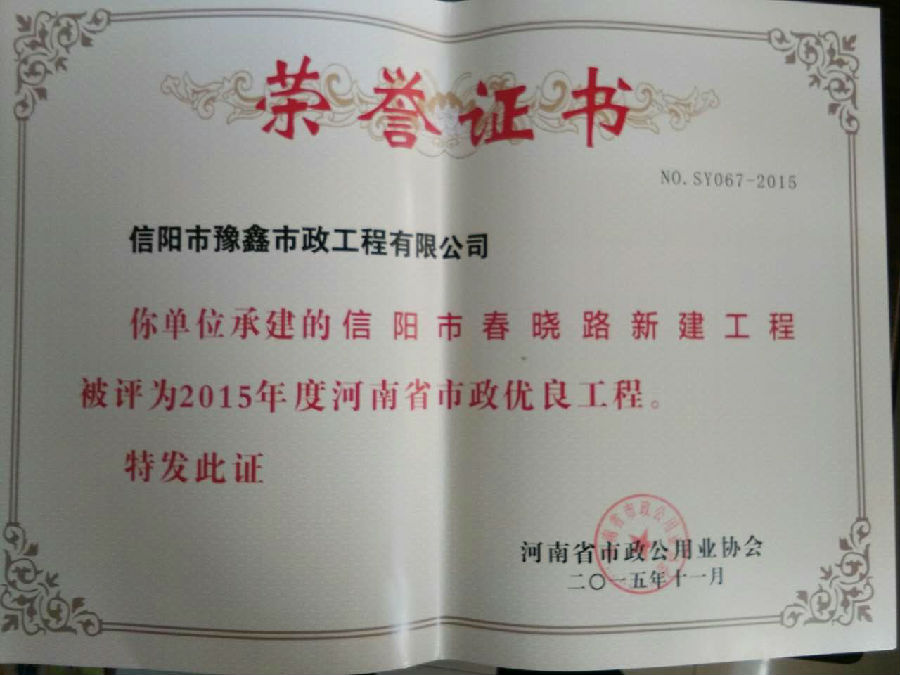 好風憑借力,送我上青云。近年來,公司積極參與城市市政基礎(chǔ)設(shè)施建設(shè)施工,積極參與市場競爭,先后承擔施工了市政府重點工程南京路道路改造工程、春曉路道路改造工程,東方紅大道道路改造工程、龍江東路新建工程等重點民生工程,其中南京路道路改造工程被省建設(shè)廳評為“中州杯”, 春曉路和東方紅大道道路改造工程被省建設(shè)廳評為“省優(yōu)工程”,成為城區(qū)一道道亮麗的風景線。參與施工了市典范小區(qū)“臺北城上城”、“恒大名都”以及師范學(xué)院、職業(yè)技術(shù)學(xué)院、交警支隊和軍區(qū)道路工程,參與施工了雞公山管理區(qū)、南灣管理區(qū)、明港鎮(zhèn)和羅山縣等部分道路小區(qū)工程施工,累計大小各類施工工程三百余項,企業(yè)影響力不斷擴大、輻射力不斷增強,市場份額不斷提高,企業(yè)信譽不斷彰顯,為信陽城市建設(shè)做出了積極貢獻,為企業(yè)的可持續(xù)發(fā)展插上了騰飛的翅膀。